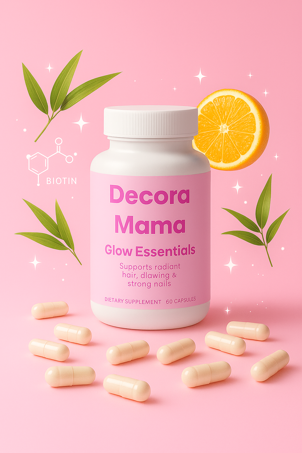 Every capsule of Glow Essentials is packed with vitamins, minerals, and botanicals that nourish beauty from within. Biotin, Folate, and Vitamin B6 help your body maintain healthy elastin and collagen, while Vitamin A, C, and E protect and renew your skin. A gentle blend of plant-based extracts — like Horsetail, Bamboo, and Spirulina — provides natural support for strong hair, radiant skin, and healthy nails.
